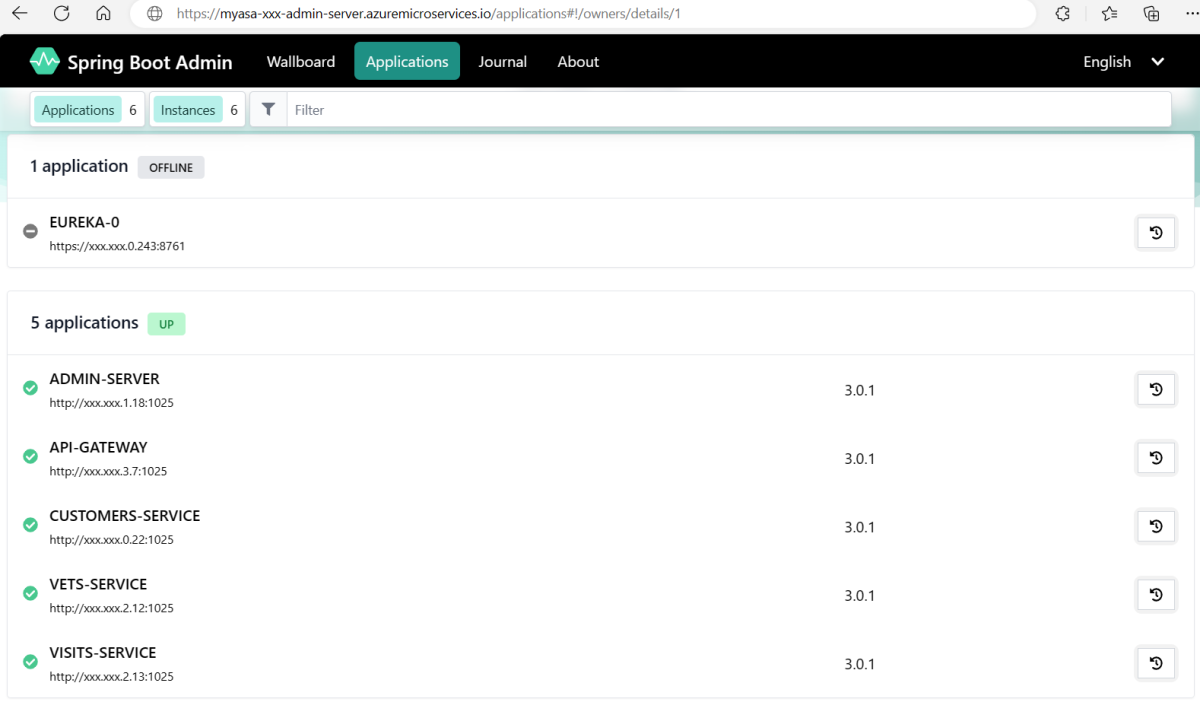 Die bereitgestellte App admin-server macht den öffentlichen Zugriff verfügbar. Dies ist ein Risikopunkt. Die Produktionsumgebung muss die Spring Boot Admin-Anwendung schützen.