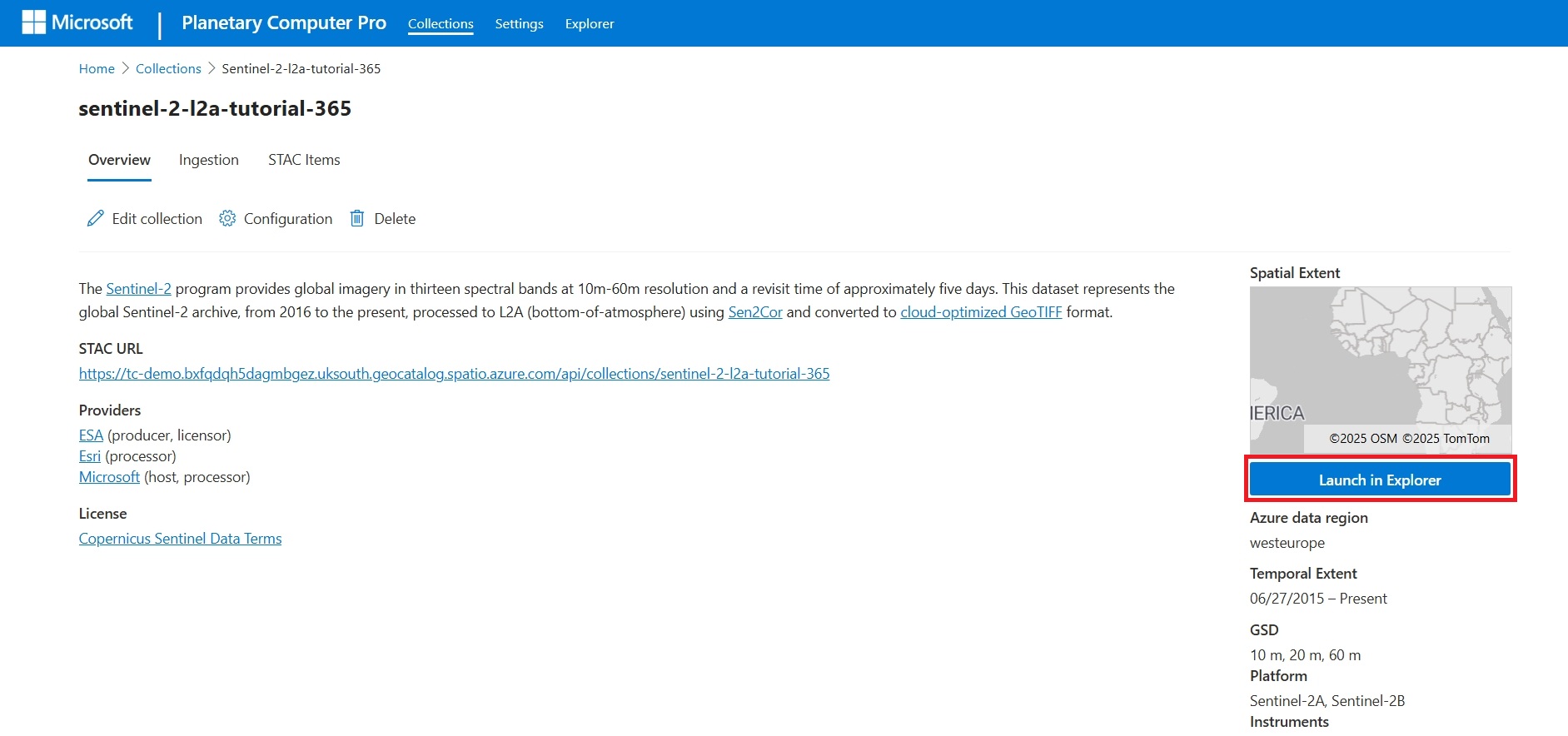 Open the Microsoft Planetary Computer Pro web interface by following the instructions in Create a collection with the Microsoft Planetary Computer Pro web interface.