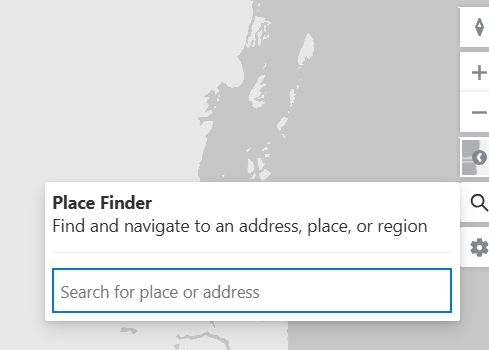 - To find items near a specific location or address, select the magnifying glass icon on the right-side of the map to reveal the Place Finder search tool.