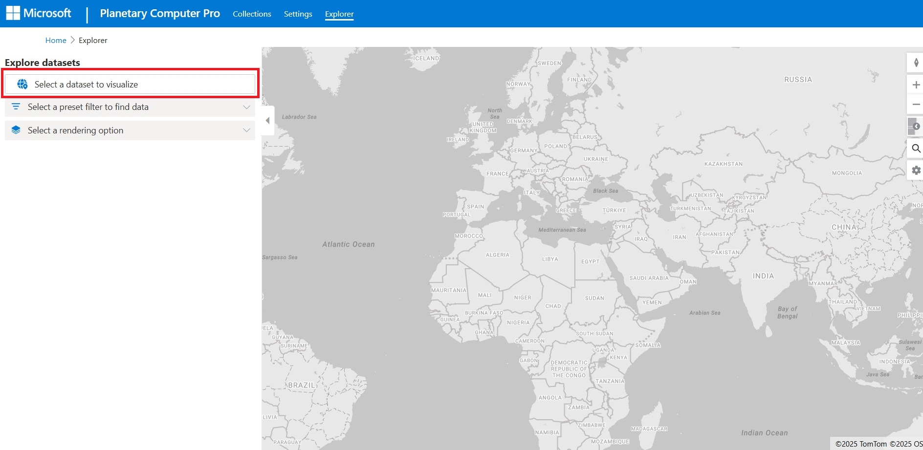 In this Quickstart, you learn how to interact with the Microsoft Planetary Computer Pro Explorer. The Explorer is the easiest way for Planetary Computer Pro users to visualize and interact with their data.