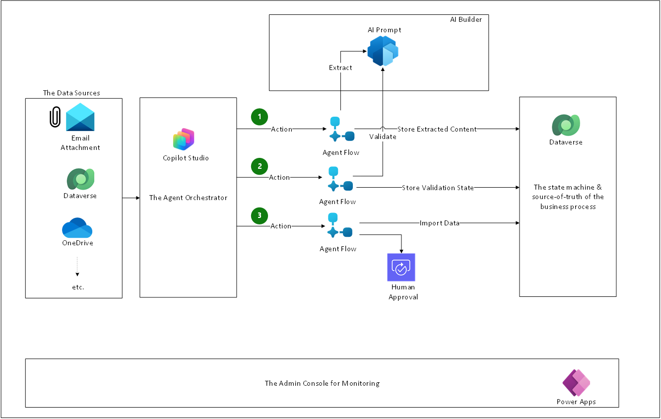 The Document Processor managed agent is a packaged solution for end-to-end document processing. It handles extraction, validation, human monitoring, and exporting to downstream apps. This article shows the reference architecture for using an autonomous agent in Copilot Studio to process documents. You can adapt the architecture example for different scenarios and industries.