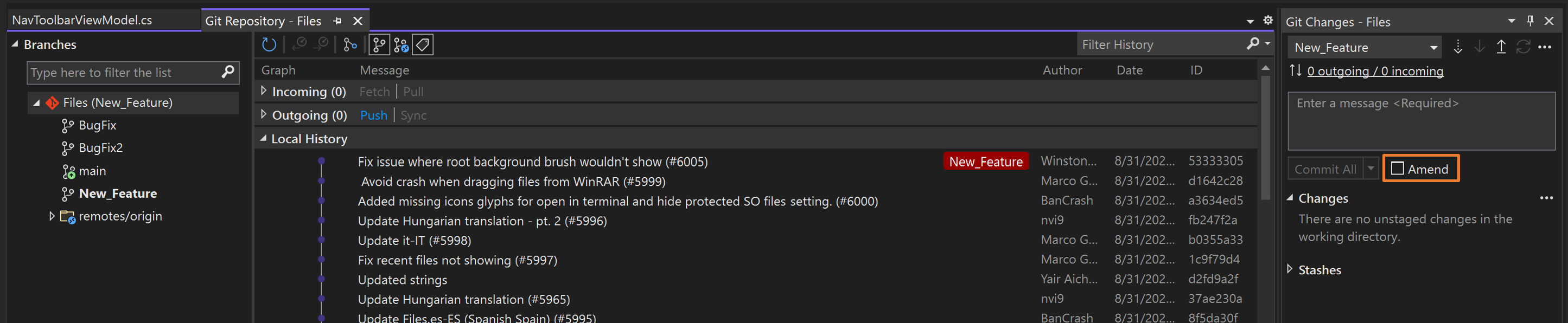 When you finish editing your commit message, select Amend.