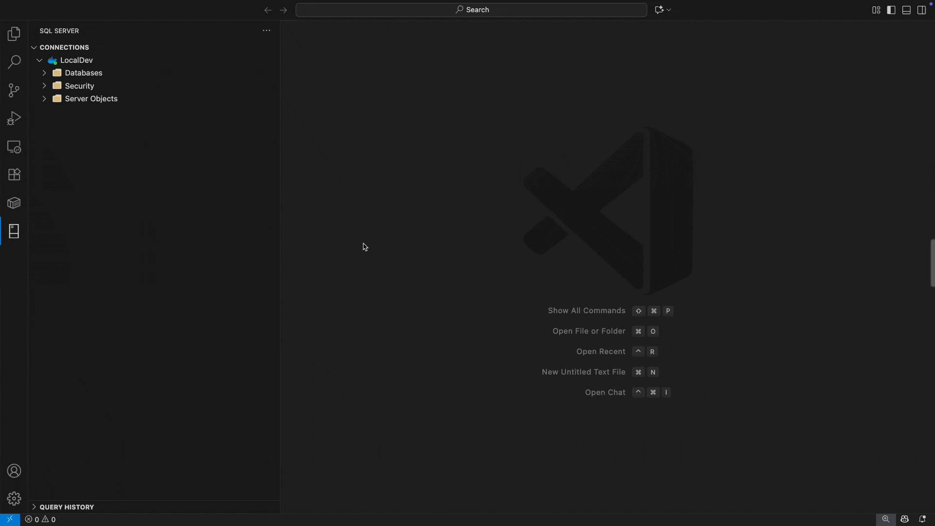- The MSSQL extension opens the standard connection dialog.