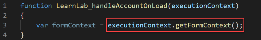 The Client API form context (formContext) references the form or an item on the form, such as a quick view control or a row in an editable grid, against which the current code runs. You can retrieve the formContext object from the execution context using the getFormContext function.