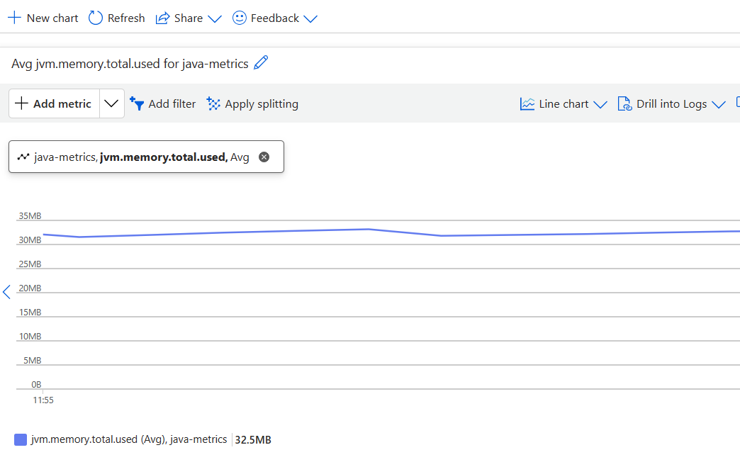 Puede ver los nombres de métricas de Java en Azure Monitor, pero los conjuntos de datos se muestran como vacíos a menos que la característica esté habilitada. Consulte la sección Configuración para obtener información sobre cómo habilitarla.