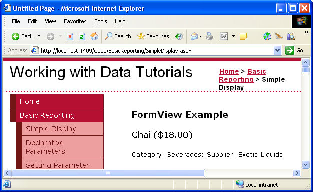 Figura 18: El primer producto (Chai) se muestra en un formato personalizado (haga clic para ver la imagen de tamaño completo)