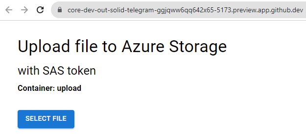 Al final de este tutorial, tendrá una aplicación en funcionamiento implementada en Azure Container Apps que muestra cargas de archivos seguras sin exponer las credenciales de almacenamiento al explorador.