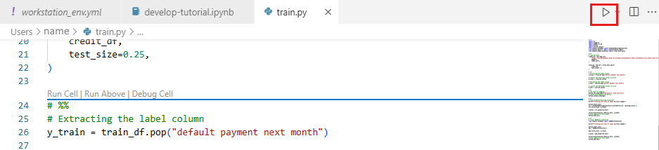 En esta sección, desarrollará un script de entrenamiento de Python que predice incumplimientos de pago de tarjeta de crédito mediante los conjuntos de datos de prueba y entrenamiento preparados del UCI dataset.