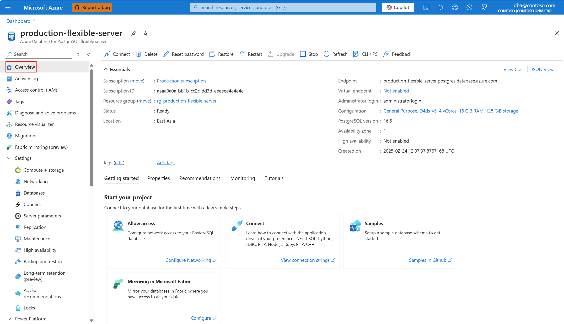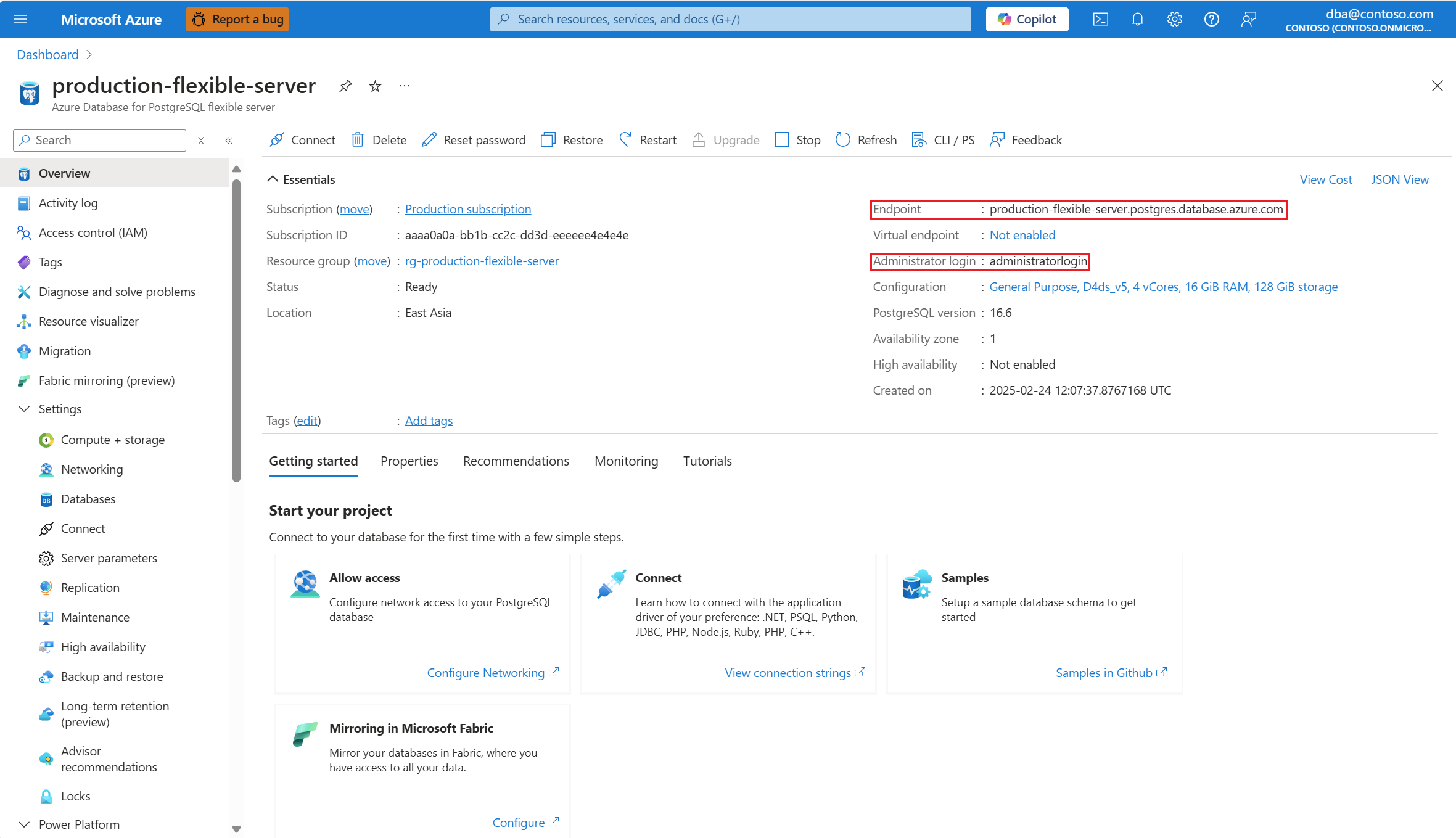 - Una instancia de servidor flexible de Azure Database for PostgreSQL. Para crear una instancia de servidor flexible de Azure Database for PostgreSQL, consulte Creación de una instancia de Azure Database for PostgreSQL.