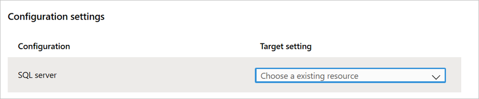 En Entre regiones, en la columna Configuración de destino para el recurso de SQL Server, seleccione Recurso no asignado.