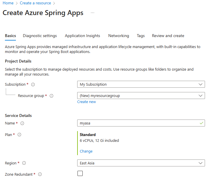 3.2. Creación de una instancia de Azure Spring Apps