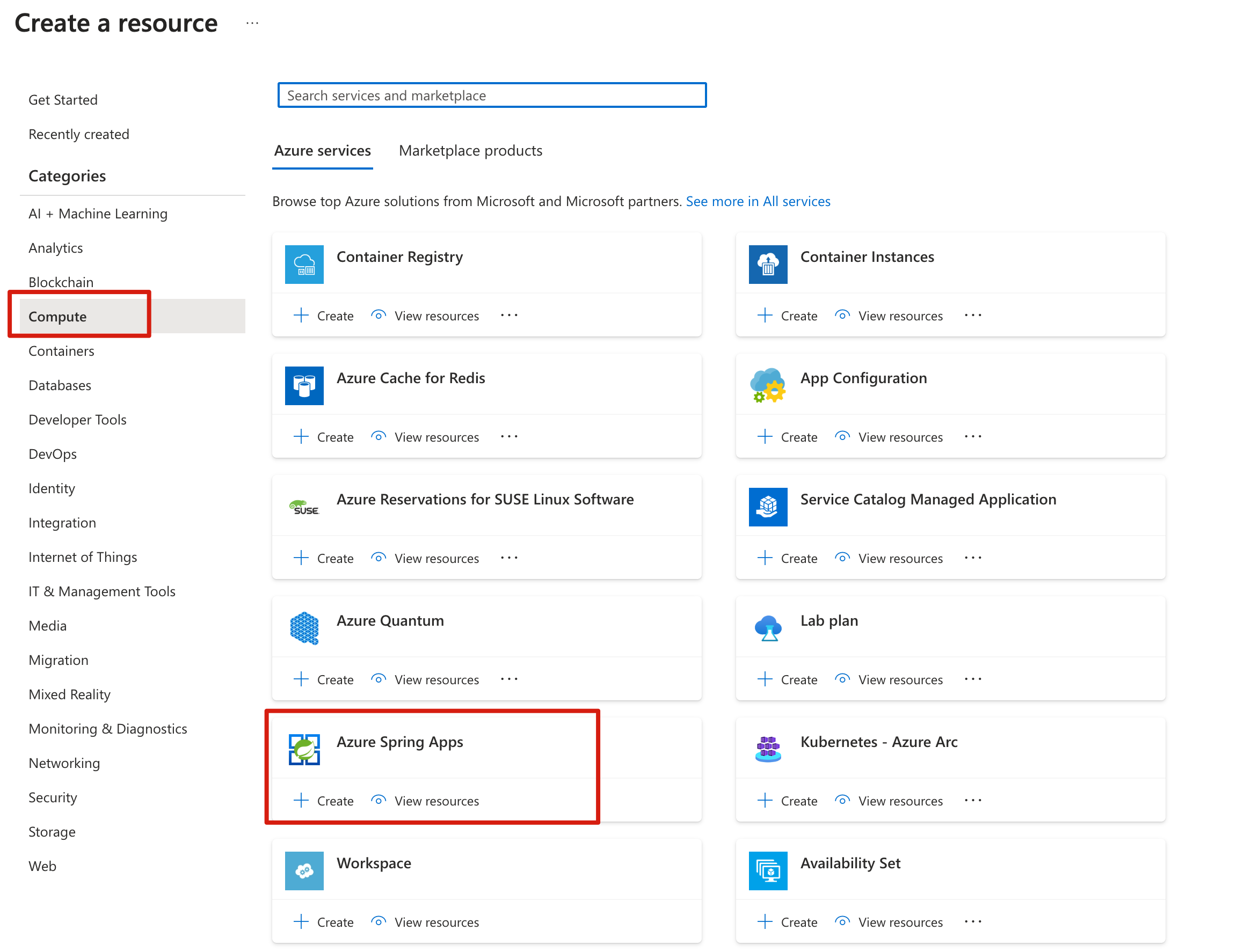 Seleccione Proceso>Azure Spring Apps.
