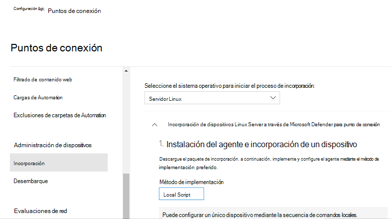 Puede implementar Defender para punto de conexión en Linux mediante diversas herramientas y métodos. En este artículo se describe cómo automatizar la implementación de Defender para punto de conexión en Linux mediante un script del instalador. Este script identifica la distribución y la versión, selecciona el repositorio adecuado, configura el dispositivo para extraer la versión más reciente del agente e incorpora el dispositivo a Defender para punto de conexión mediante el paquete de incorporación. Este método es muy recomendable para simplificar el proceso de implementación.