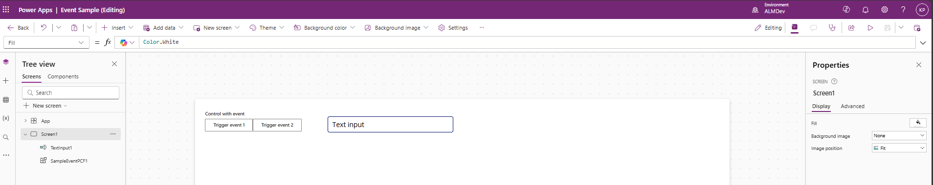 pac pcf init -n EventSample -ns SampleNamespace -t field -fw react -npmEdite el manifiesto para agregar los nuevos eventos