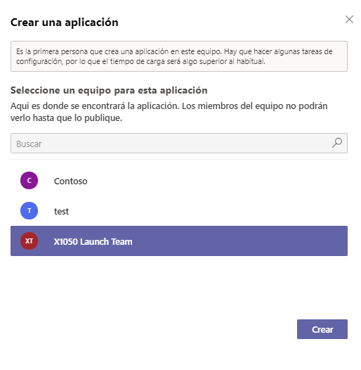 Ahora que tiene la aplicación Power Apps instalada, puede crear la primera aplicación, que aprovisionará automáticamente el entorno. Decida en qué equipo creará el entorno y guardará la tabla. La unidad Resumen de este módulo proporciona vínculos si necesita crear un nuevo equipo.