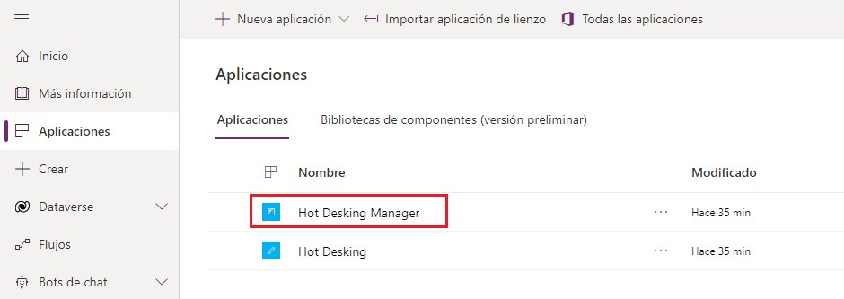 Seleccione Aplicaciones, elija la aplicación Hot Desking y ábrala en el modo de edición.