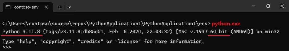 python.exeEl proceso de ejecución muestra la versión instalada de Python e indica si es de 32 o 64 bits: