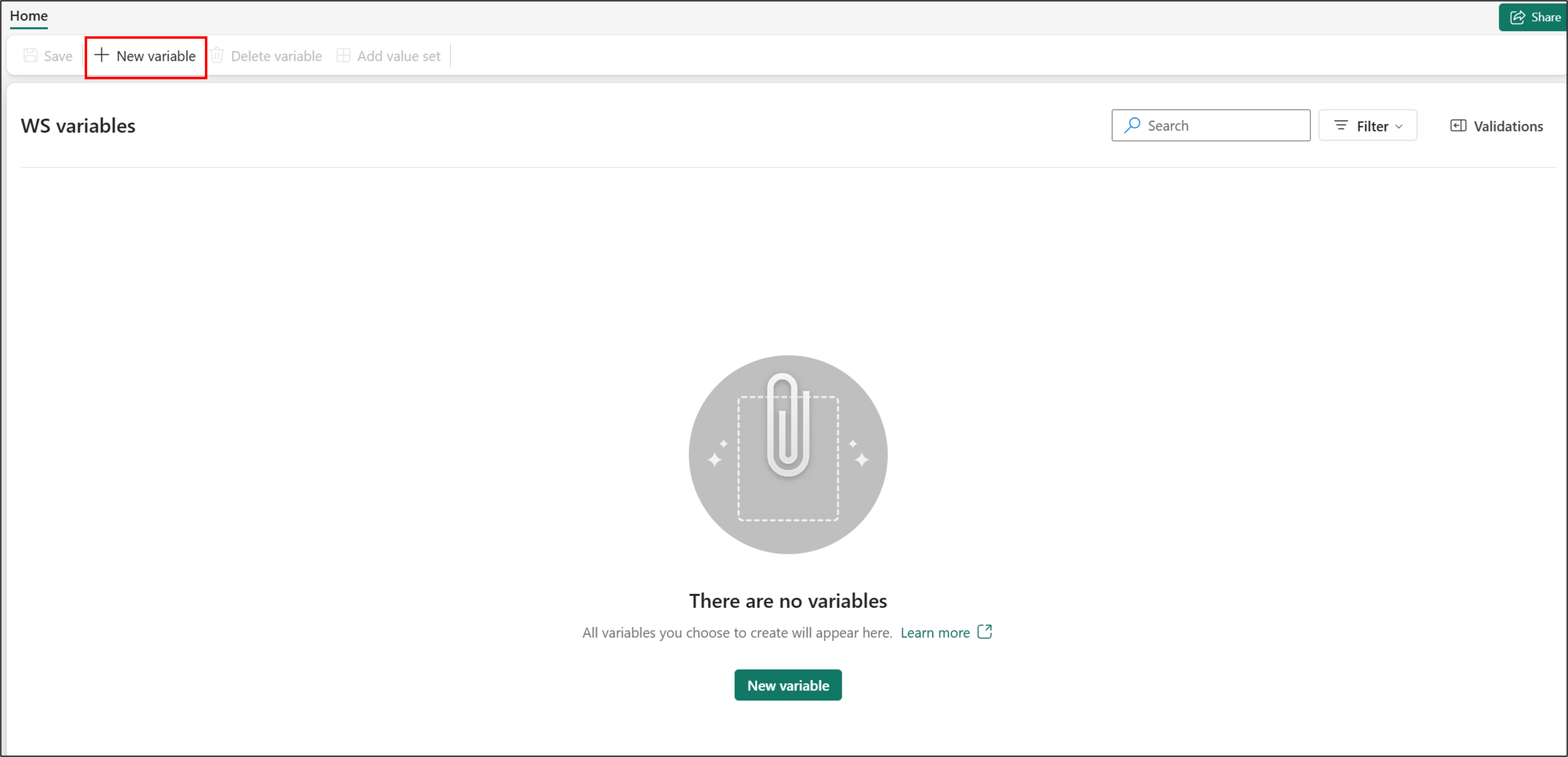 En la biblioteca de variables de WS Variables , seleccione Agregar valor establecido.