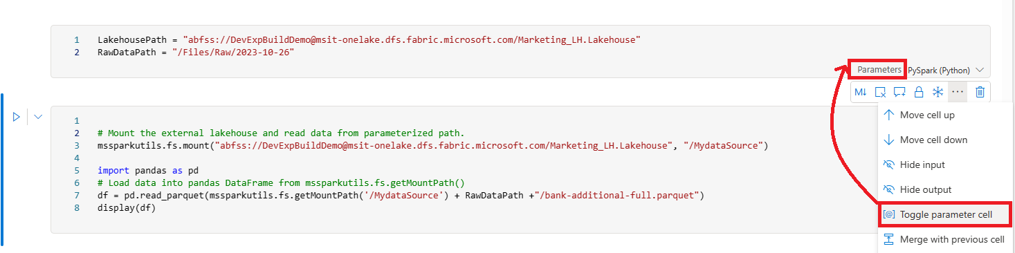Esto le permite cambiar configuraciones como el "lakehouse" predeterminado sin modificar el código del cuaderno.