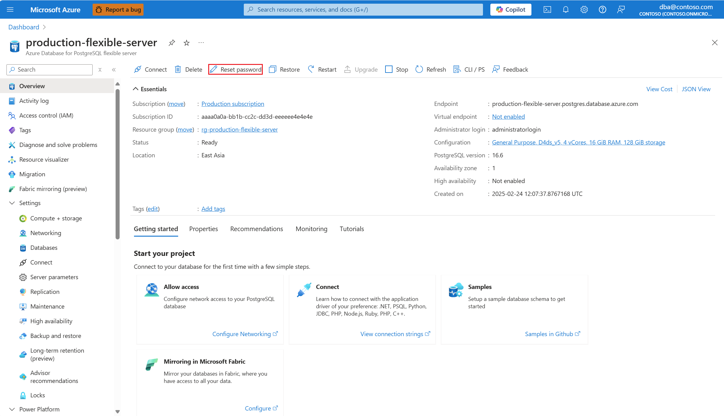 1. Nel portale di Azure, cercare e selezionare il nome dell'istanza del server flessibile di Azure Database per PostgreSQL.