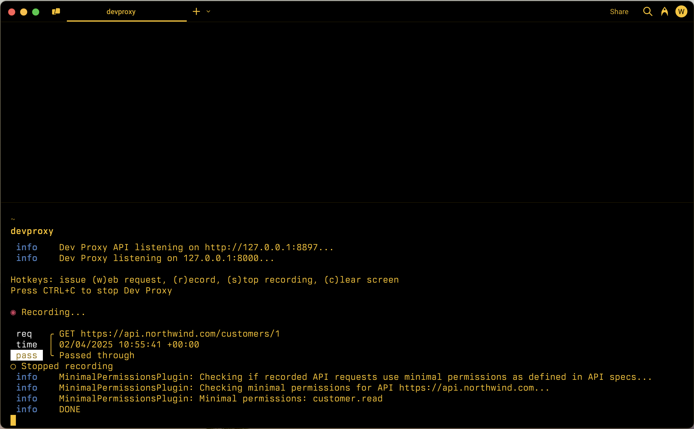 A partire da oggi, il file dei tipi CSOM incluso con Dev Proxy è incompleto. Stiamo lavorando insieme alla nostra community per documentare più tipi. Nel frattempo, è possibile aggiornarlo per includere i tipi e le autorizzazioni necessari se mancano le informazioni necessarie. È quindi possibile usare il proprio file di tipi. È consigliabile contribuire alle modifiche apportate alla community in modo che tutti possano trarre vantaggio da tali modifiche creando una richiesta pull nel repository di esempi di Dev Proxy. Le modifiche più recenti vengono estratte regolarmente dal repository al repository Dev Proxy in modo da poter trarre vantaggio dalle modifiche più recenti senza dover aggiornare l'installazione del proxy di sviluppo.