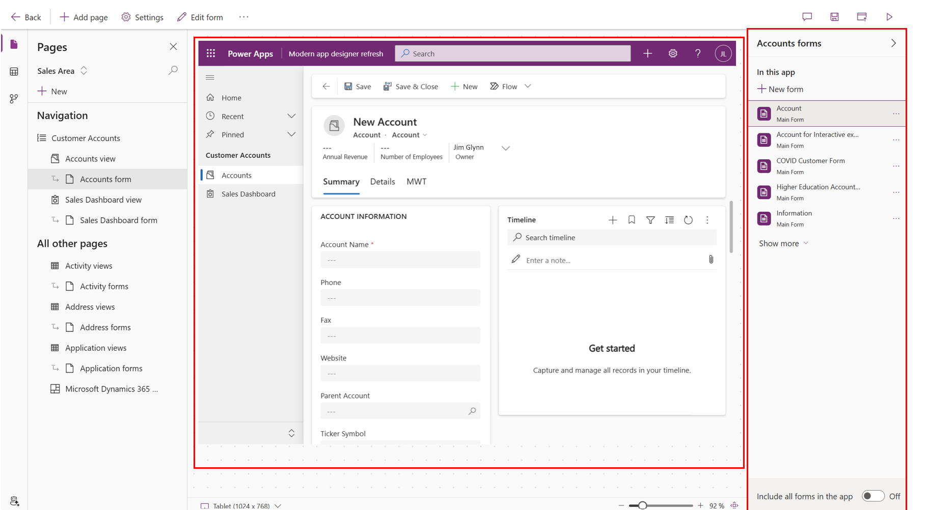 A differenza dello sviluppo di app canvas in cui il progettista ha il controllo completo sul layout dell'app, con le app basate su modello gran parte dell'interfaccia utente è predefinita ed è determinata dai componenti che aggiungi all'app.