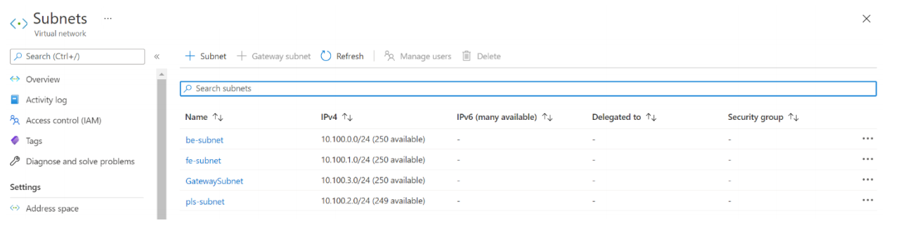 | pls-subnet | Private Link サービス用のサブネット |