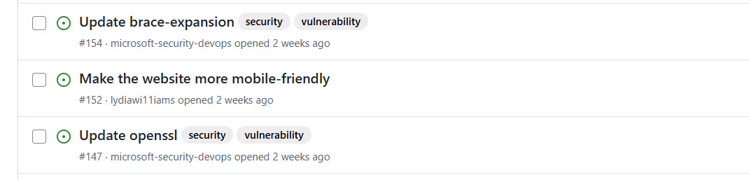 セキュリティ チームとエンジニアリング チームの間のループを閉じるには、エンジニアリング チームが重点を置く必要があるセキュリティの問題に優先順位を付けるGitHubの問題を作成できます。 この優先順位付けには、GHAS が取得しなかったものの、直接依存関係の一部ではない CVE ID に対して Defender for Cloud によって検出された結果を渡すことが含まれます。 これらの結果には、基本イメージ、オペレーティング システム、または NGINX などのソフトウェアの脆弱性が含まれる場合があります。