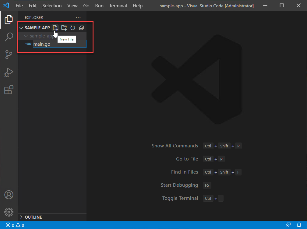このクイック スタートでは、Go コンパイラとツールをインストールし、Visual Studio Code をインストールして Go コードを記述し、Go の作成中にサポートを提供する Go for Visual Studio Code 拡張機能をインストールします。 構成したら、アプリケーションを作成して実行し、デバッグ ツールを使用して実行を一時停止し、変数の値を観察します。