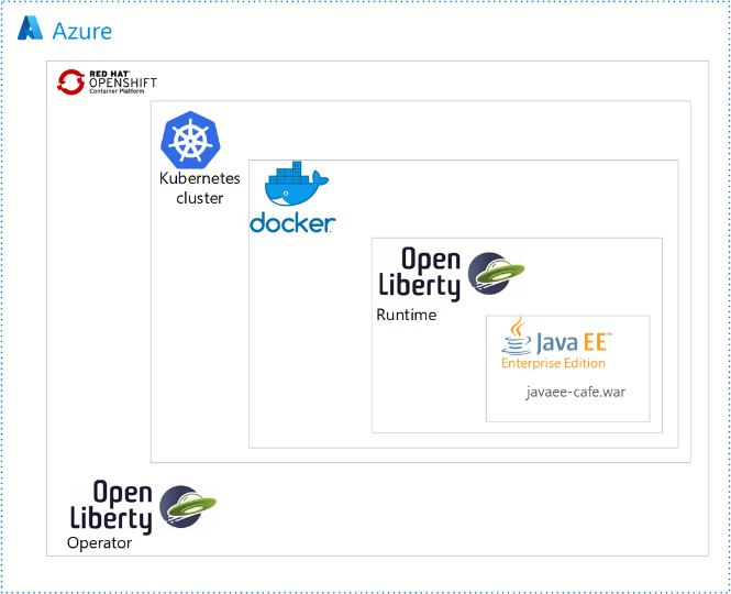 Azure Red Hat OpenShift クラスターに Liberty アプリケーションをデプロイして実行するには、Open Liberty コンテナ イメージ または WebSphere Liberty コンテナ イメージを使用して、アプリケーションを Docker イメージとしてコンテナ化します。