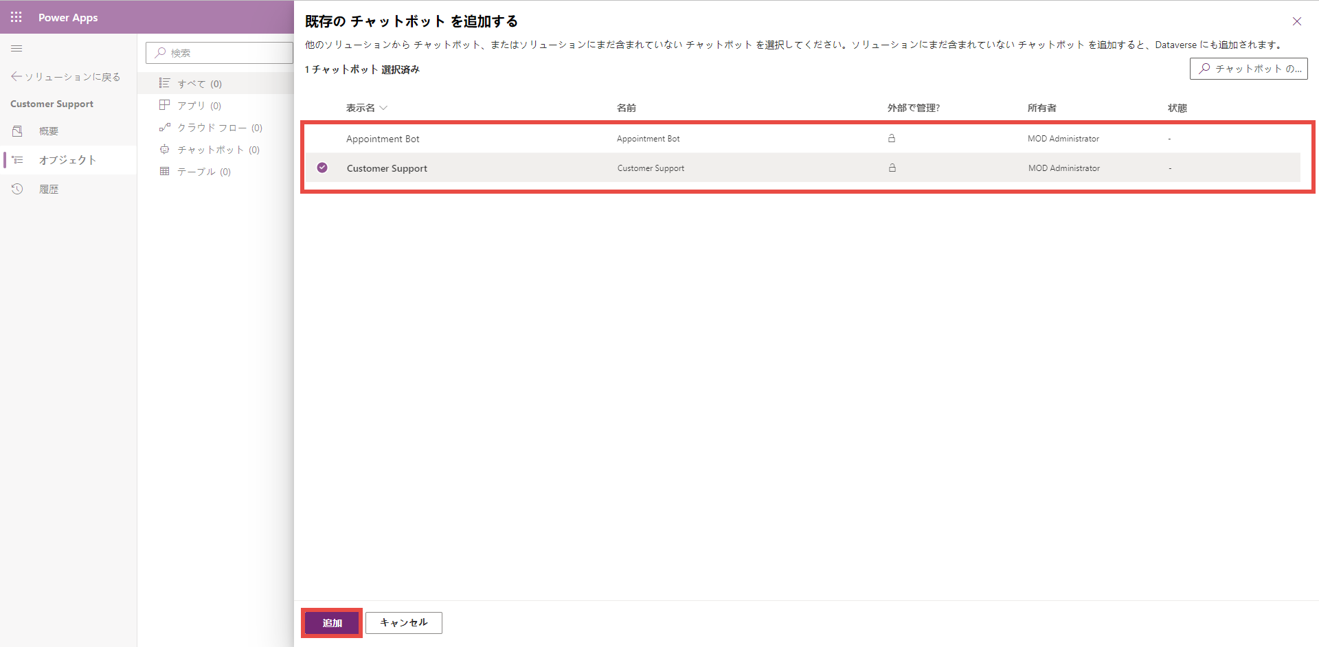 詳細については、ソリューションのインポートを参照してください。