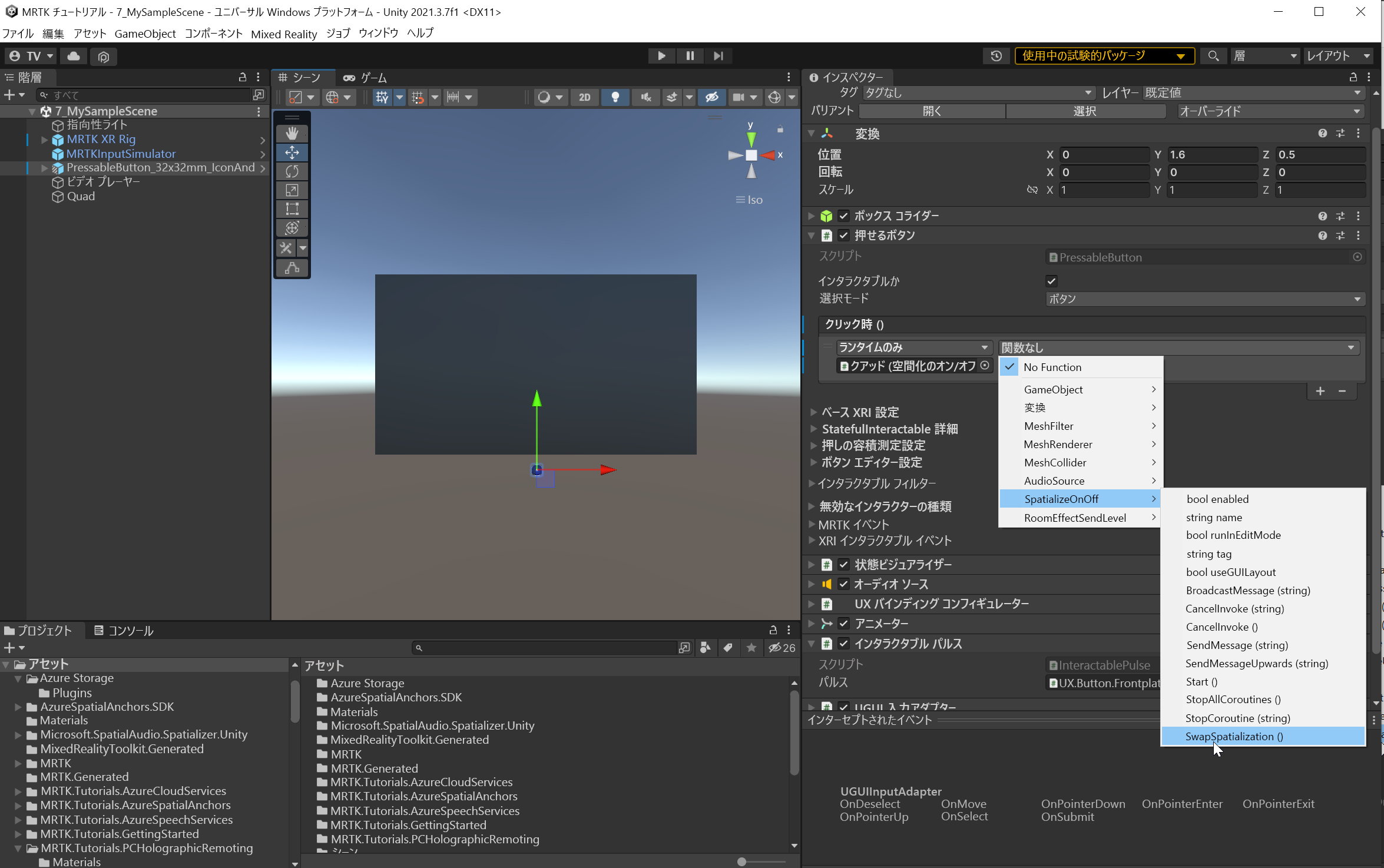 [ 関数なし ] ドロップダウンを選択し、[ SpatializeOnOff>SwapSpatialization () を選択して空間オーディオのオンとオフを切り替えます。