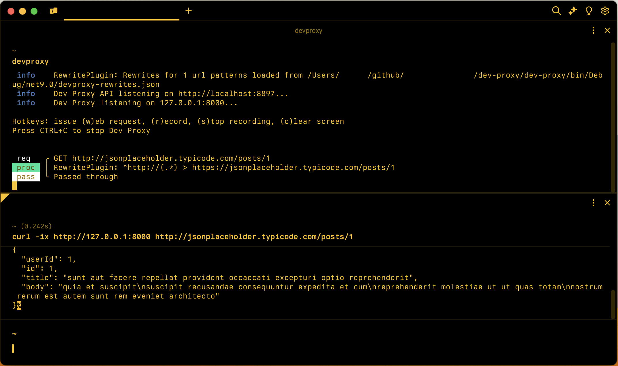 Reescreva todas as solicitações de HTTP para HTTPS. Neste contexto, tudo significa todas as solicitações configuradas com o Dev Proxy ou o RewritePlugin.